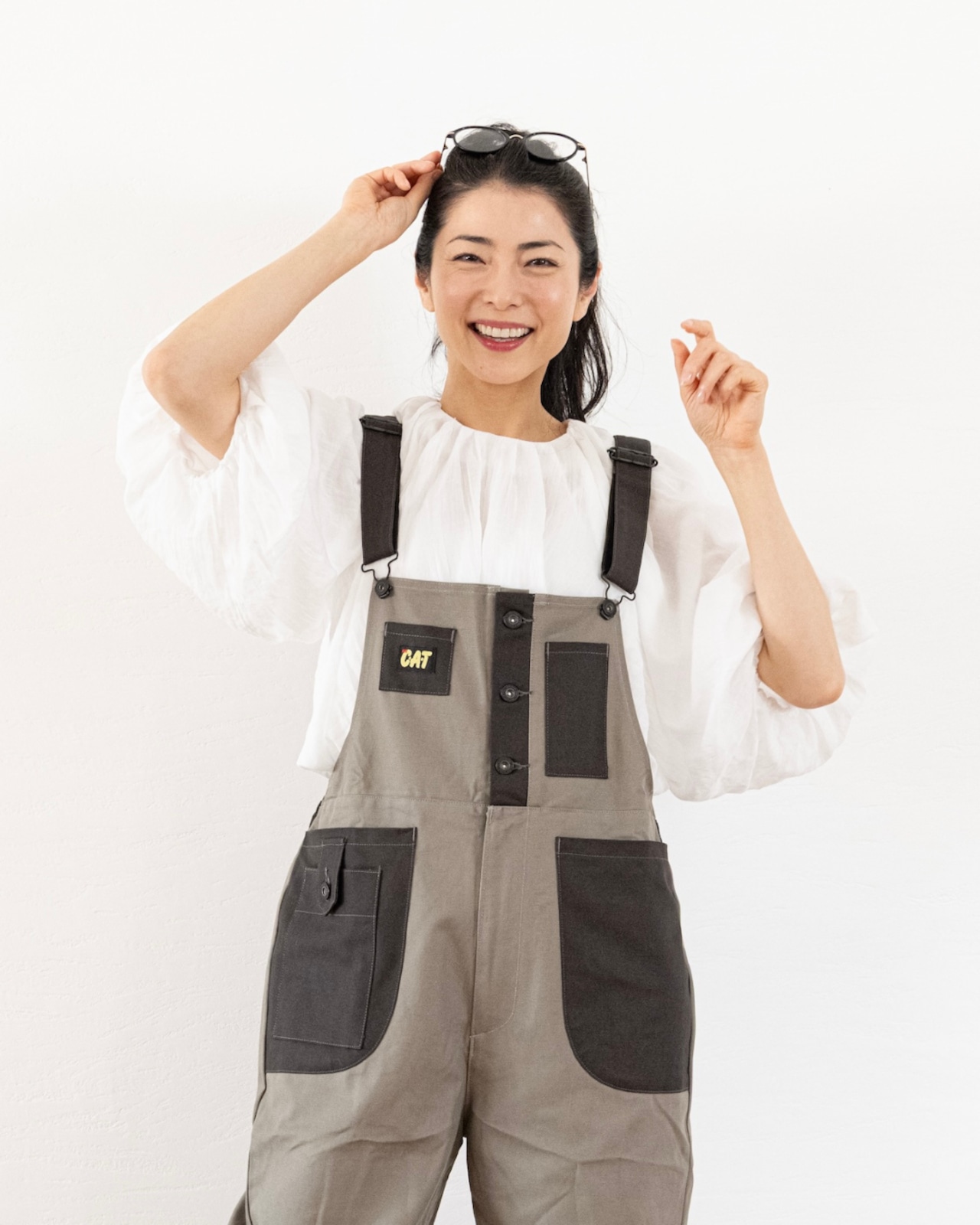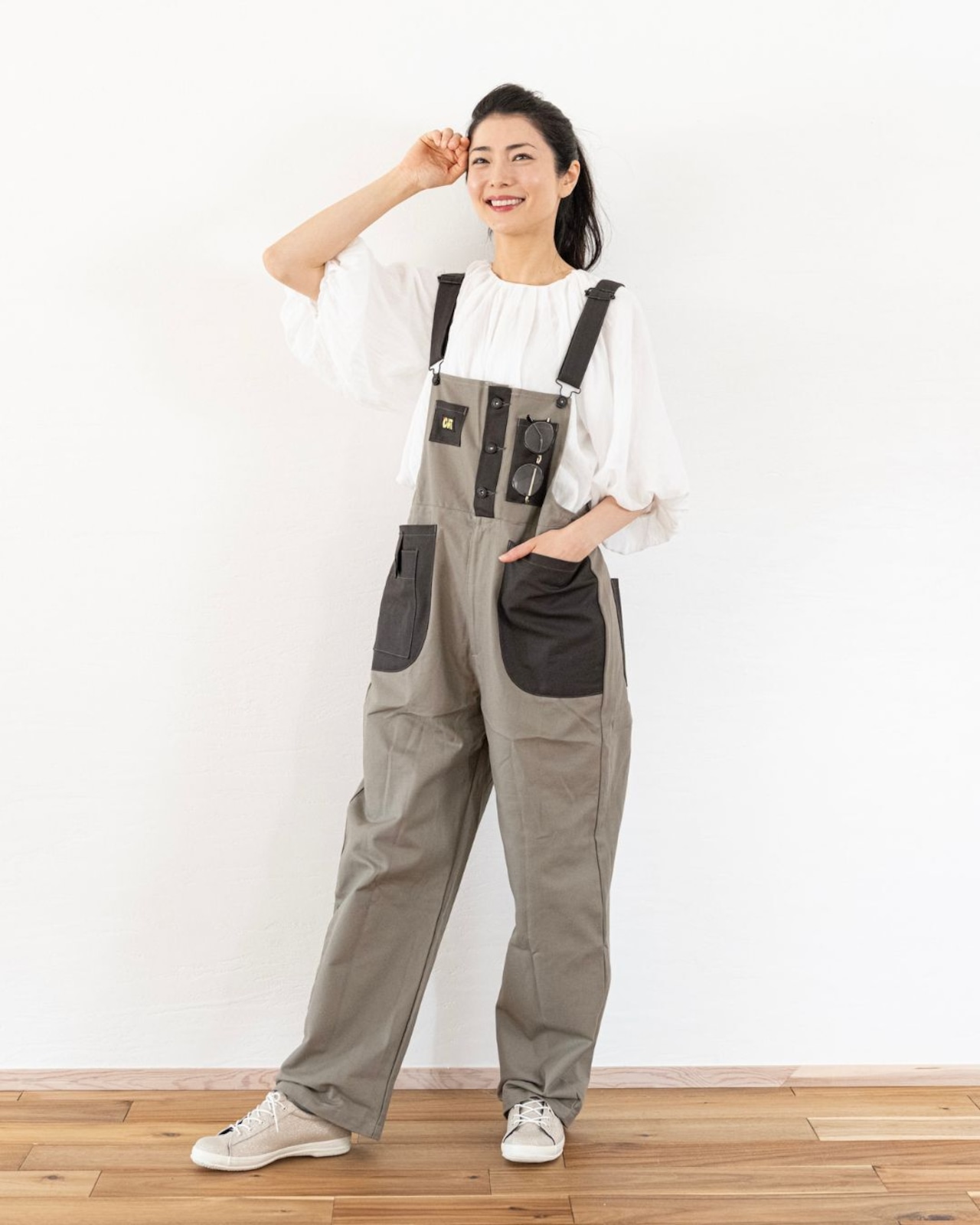 オーバーサイズ感で着こなせるサロペットなので、ワークエプロンとして服の上からさっと着て使っていただくこともできます!