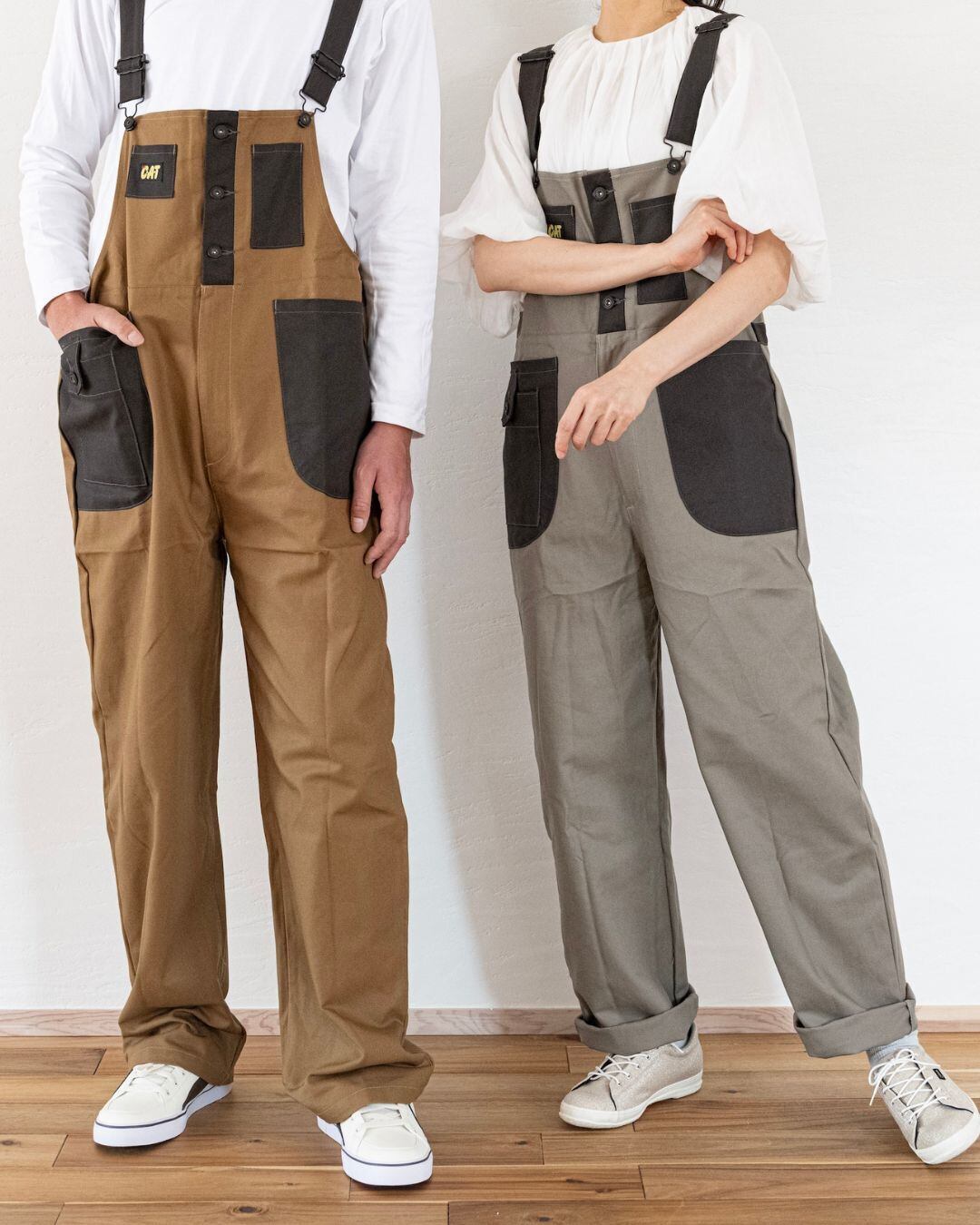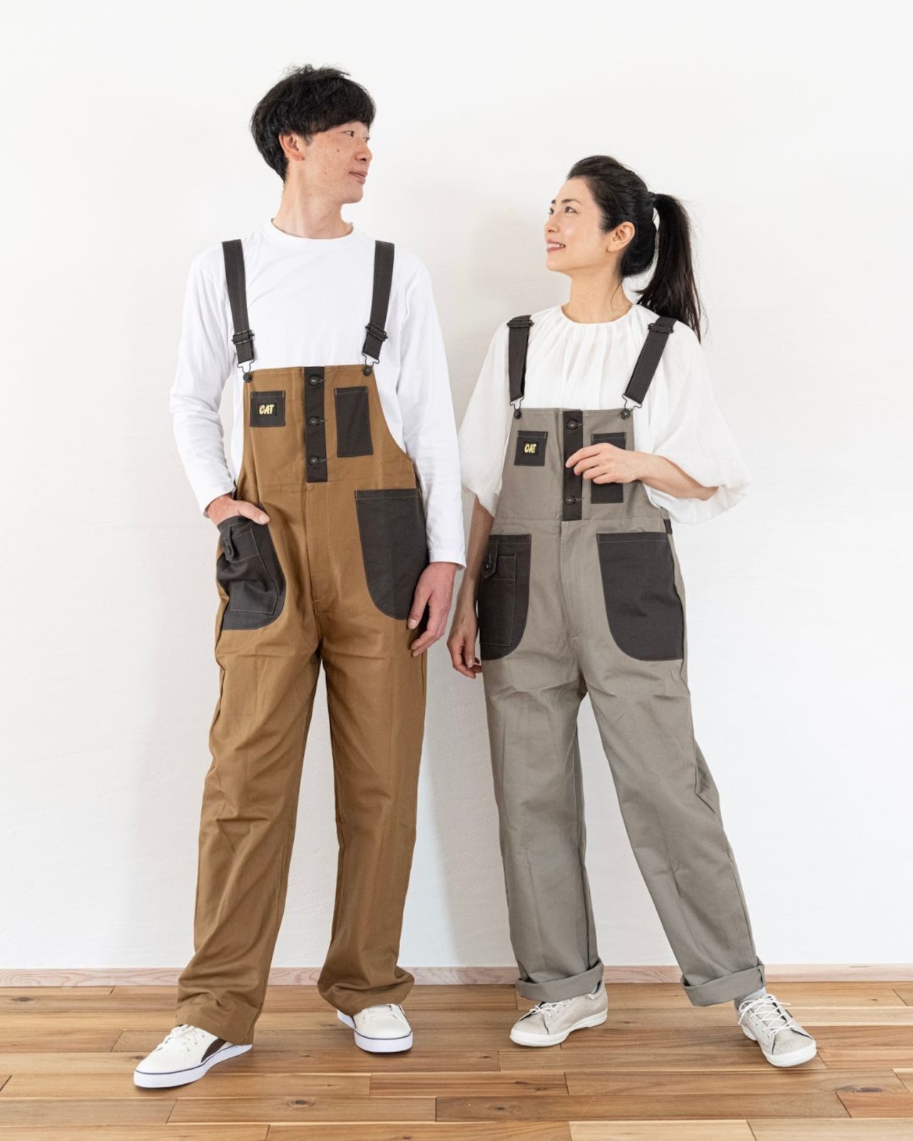 大きなポケットとバイカラーが個性的で、型にとらわれず作業着としてもオシャレ着としてもおすすめのサロペットです。国産生地を使った国内生産、Made In Japan の自信作!『着るとワクワクする』そんな思いを込めて作りました。