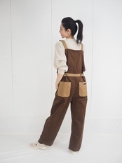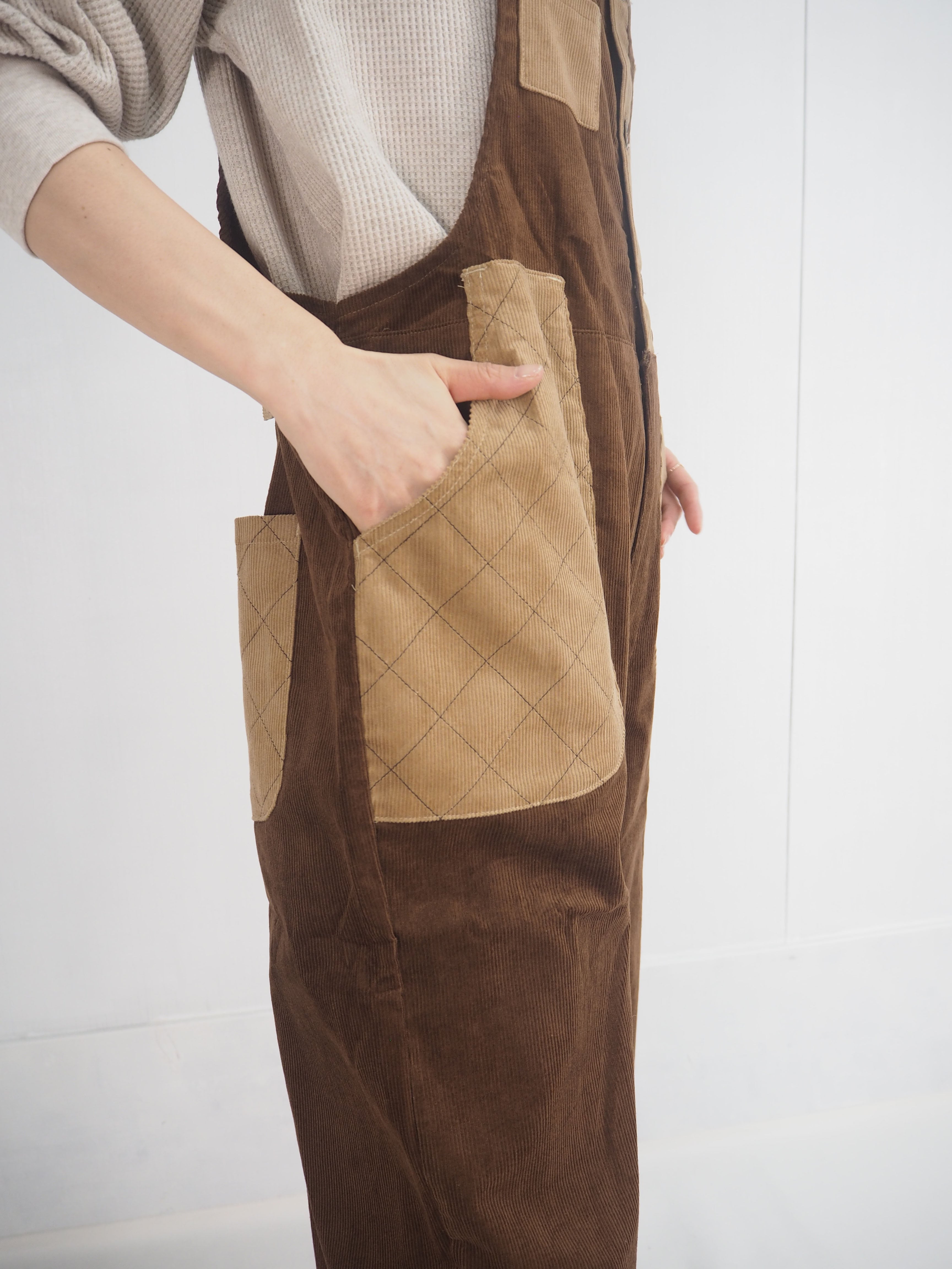 613 コーデュロイサロペット/460ブラウンxベージュ