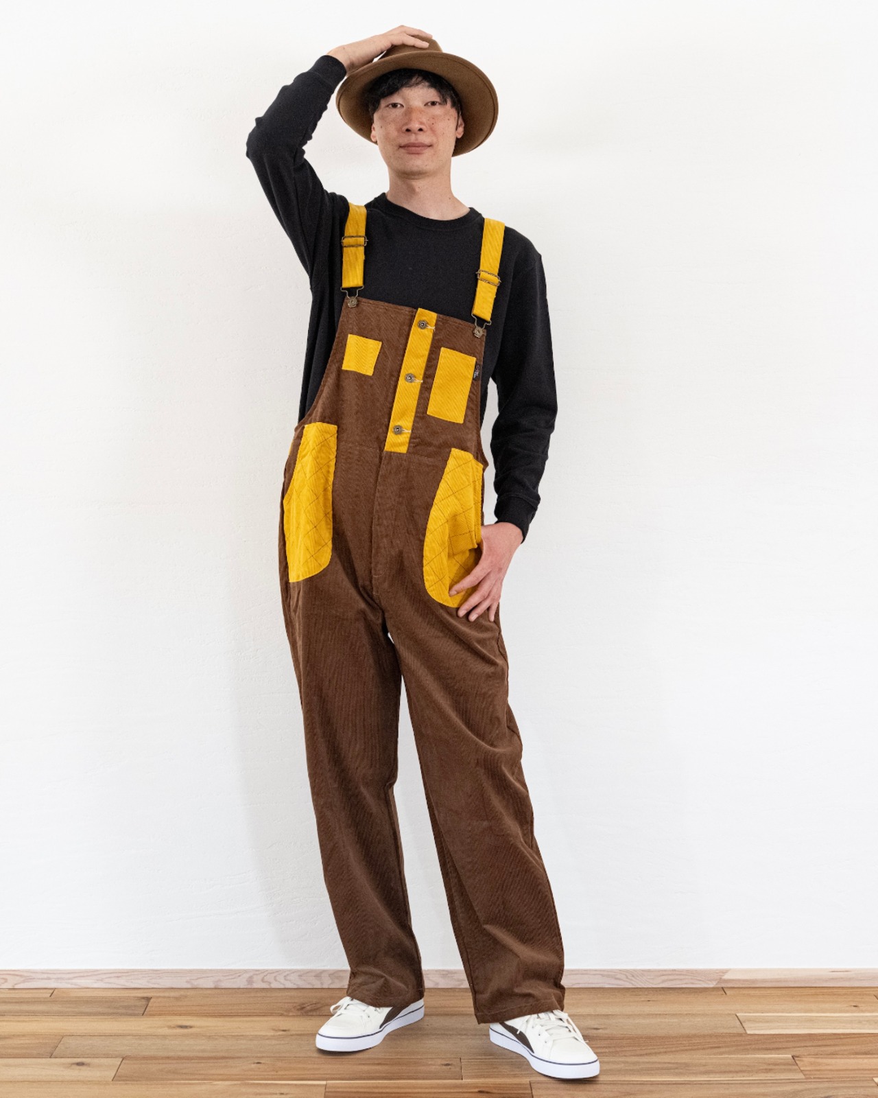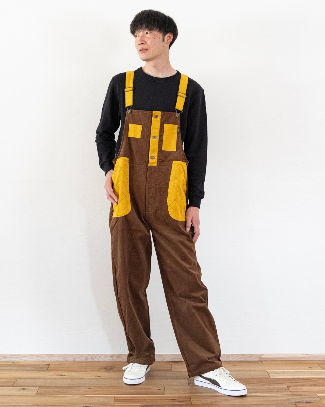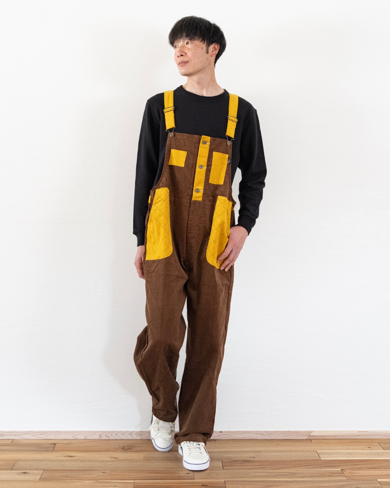 613 コーデュロイサロペット/660ブラウンxマスタード
