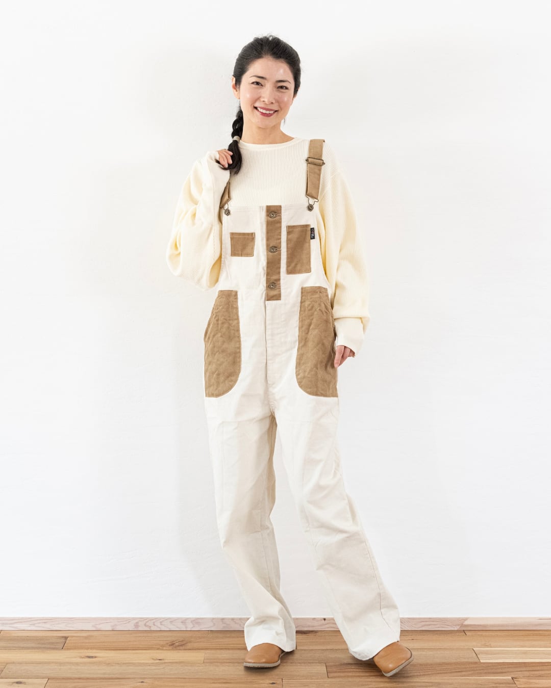 613 コーデュロイサロペット/640ホワイトxベージュ