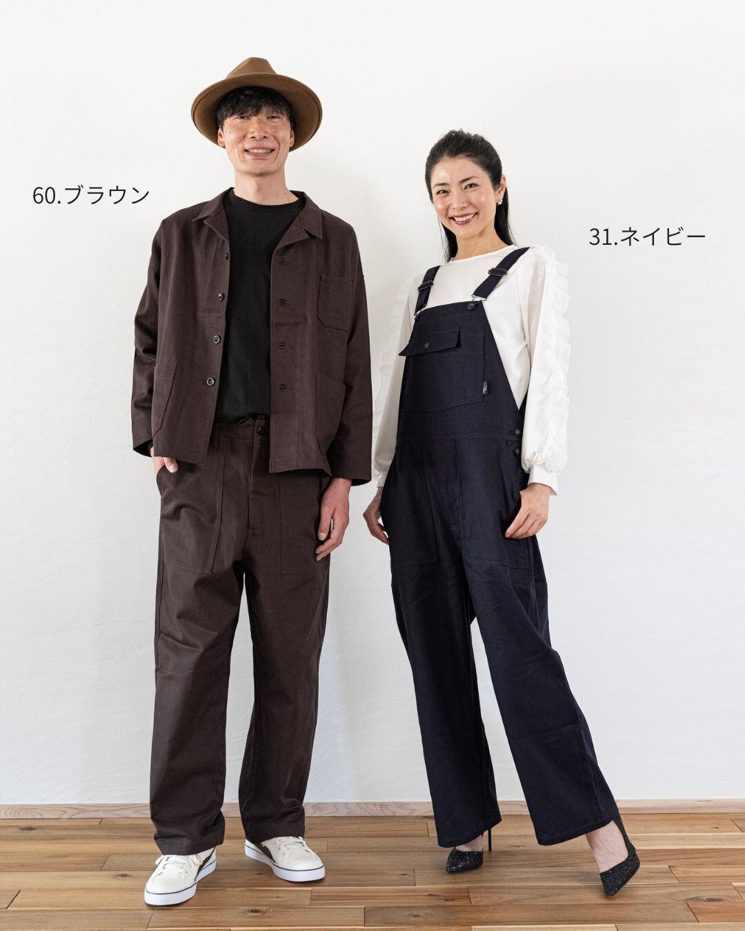 サロペット、ジャケット、パンツのセットアップシリーズでコーディネートは限りない。ワークウェアとしては新しいタイプだけど、筒袖や綿の風合いはどことなくレトロ感が漂う、ビンテージライクでおしゃれなセットアップです。