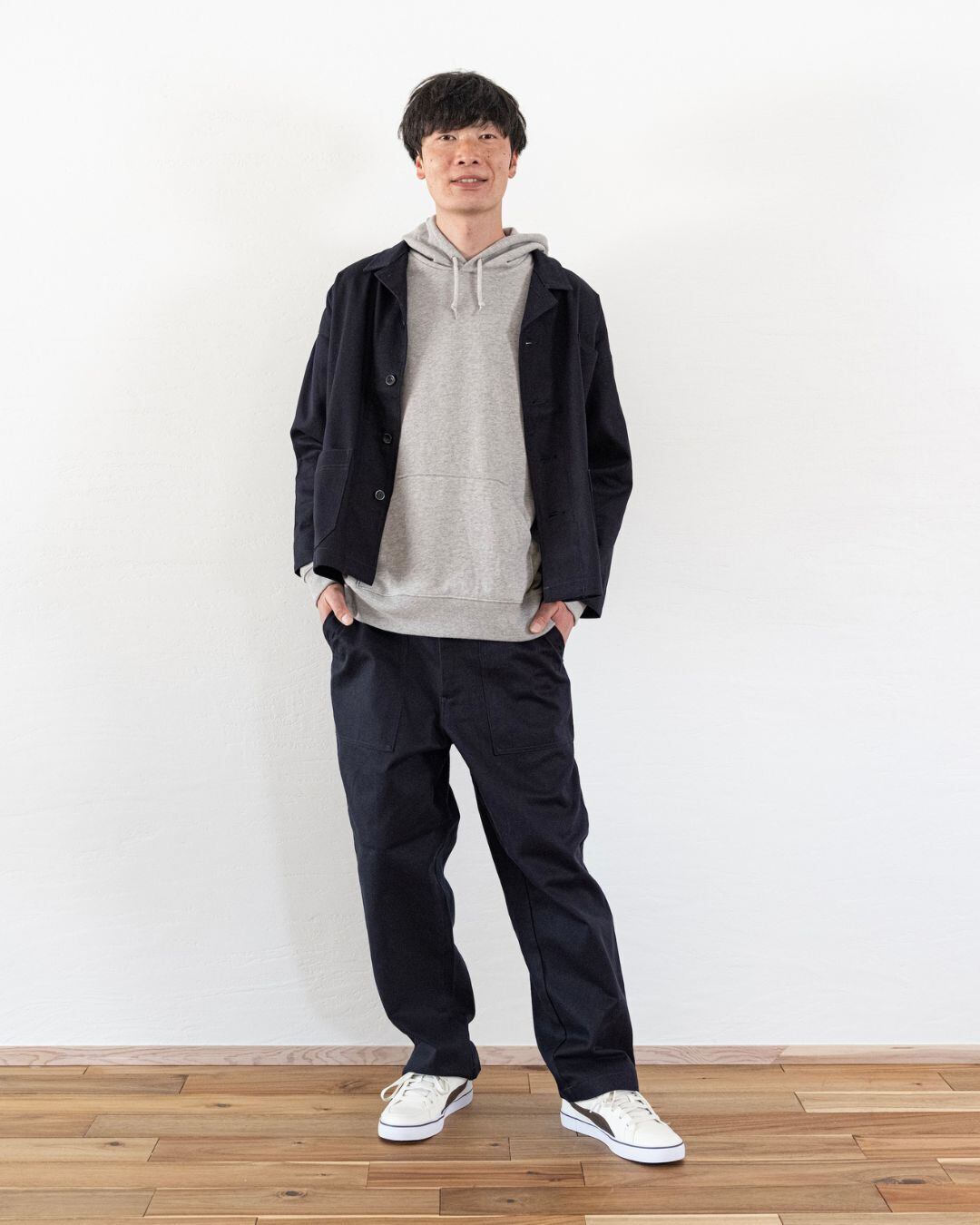 流行りのワイドシルエットで抜け感のあるカジュアルワークウェアです。