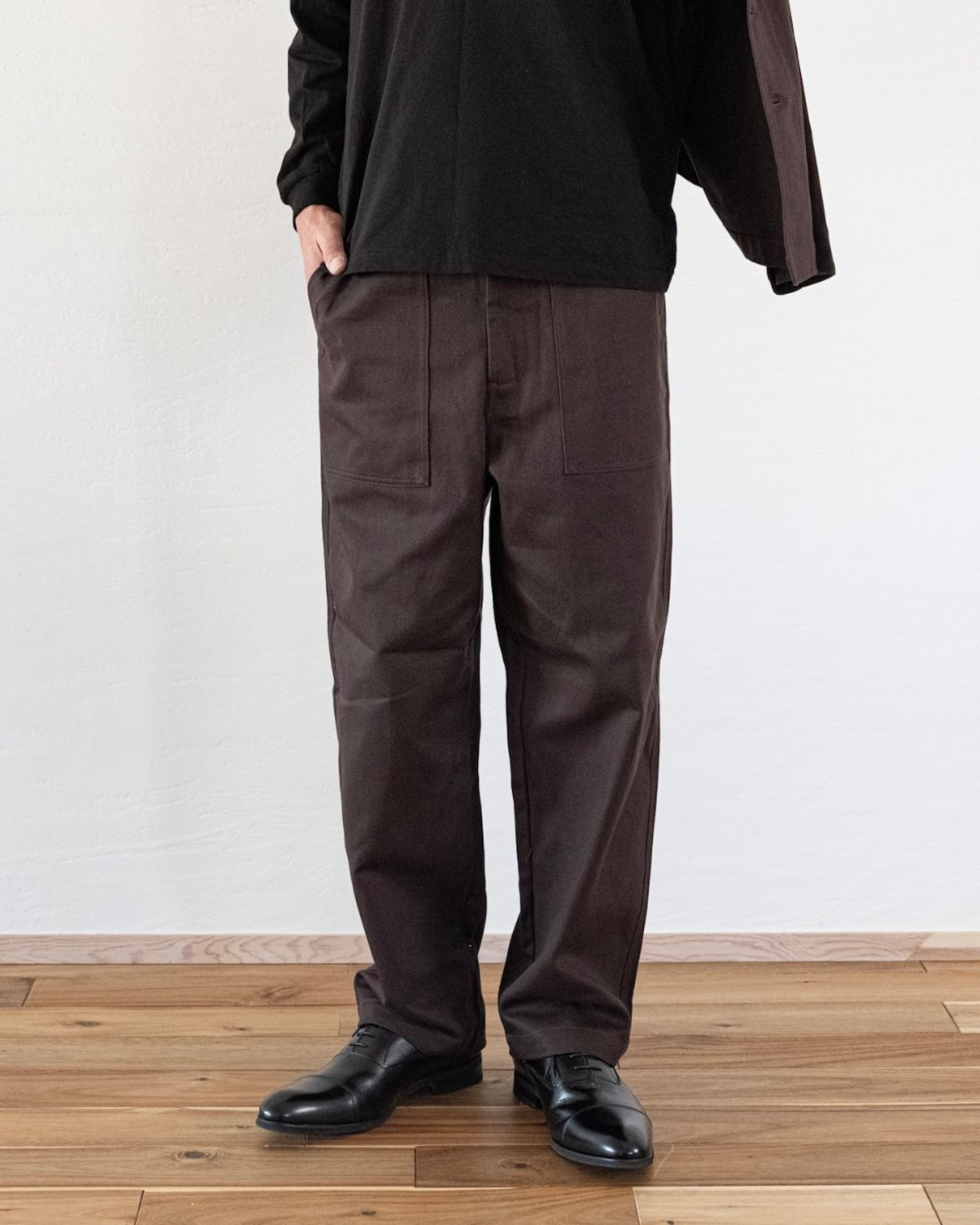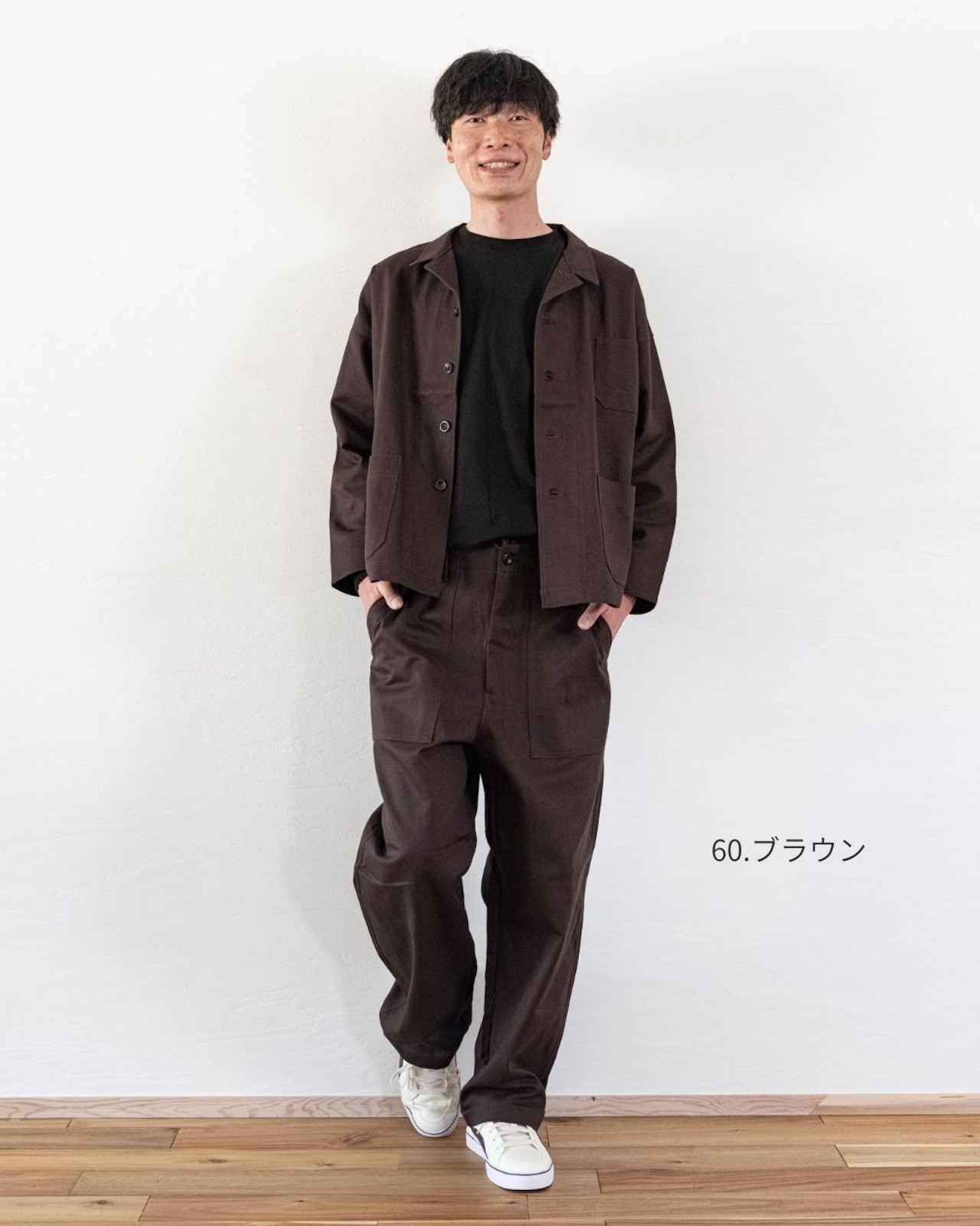 流行りのワイドシルエットで抜け感のあるカジュアルワークウェアです。