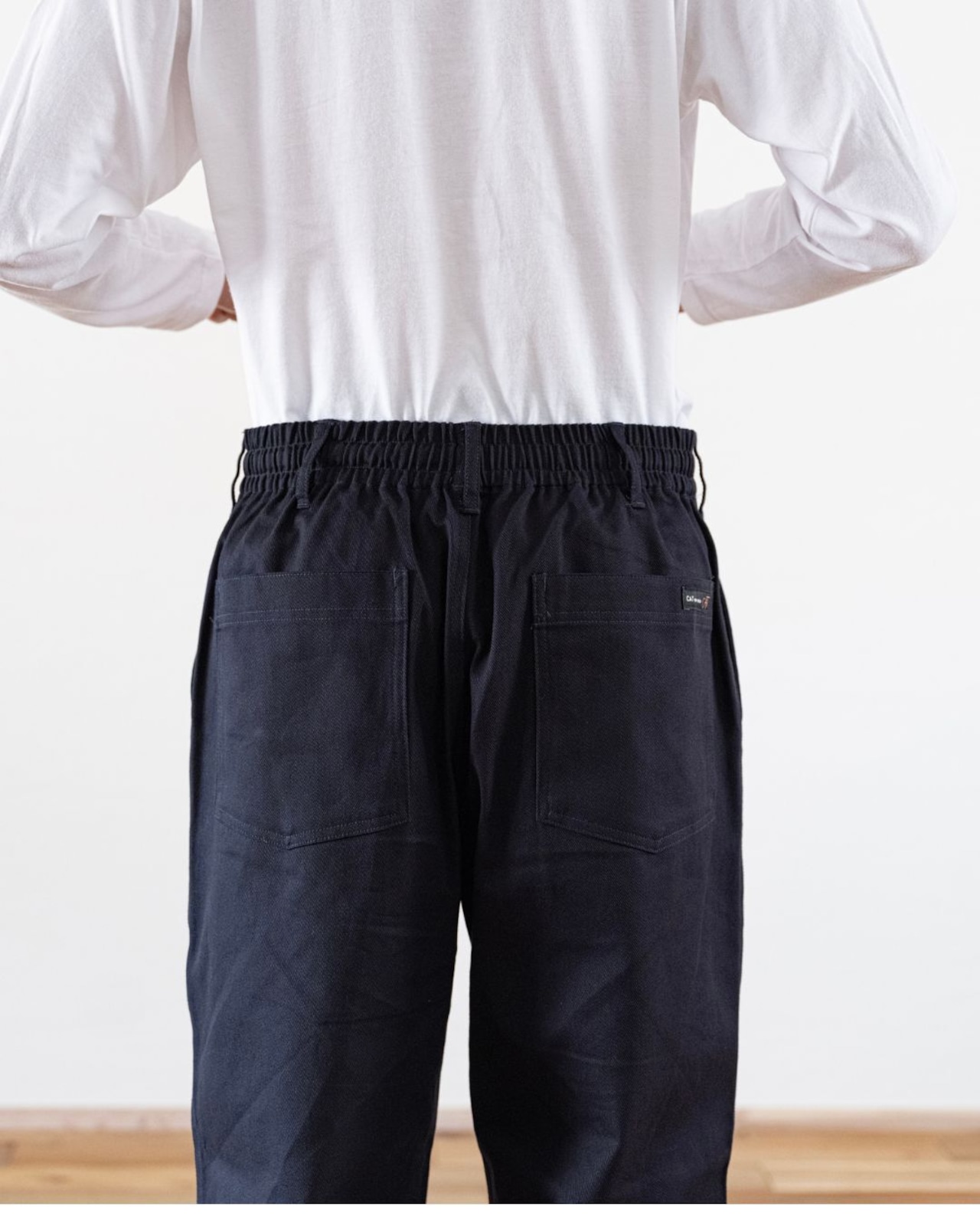 パンツはウエスト後ろがゴムでゆったりと履きやすく、また紐で簡単に調節できます。パンツ単体でも良いし、ジャケットと合わせるとオフィスカジュアルとしても十分着ていただけます。