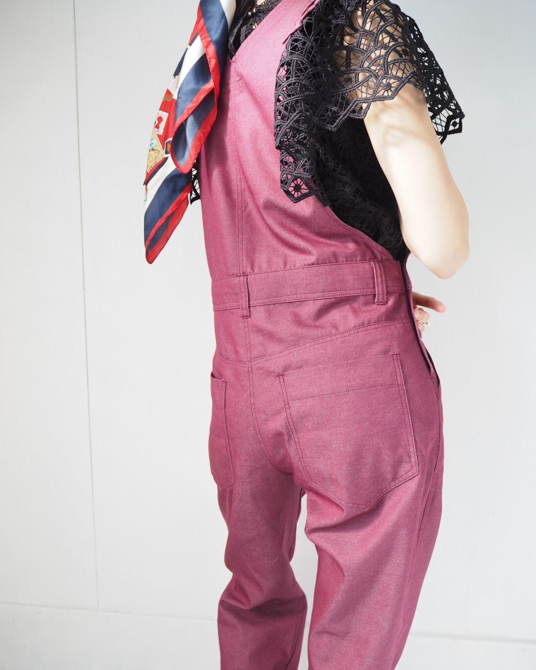 白の緯糸とカラーの縦糸で織ったカラーデニムを使った多色展開で『あなたに合う色がある!』がコンセプトのサロペットです。