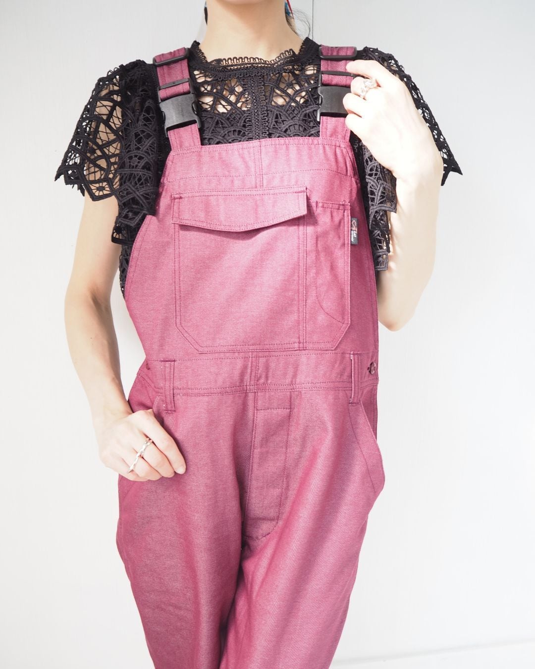 白の緯糸とカラーの縦糸で織ったカラーデニムを使った多色展開で『あなたに合う色がある!』がコンセプトのサロペットです。