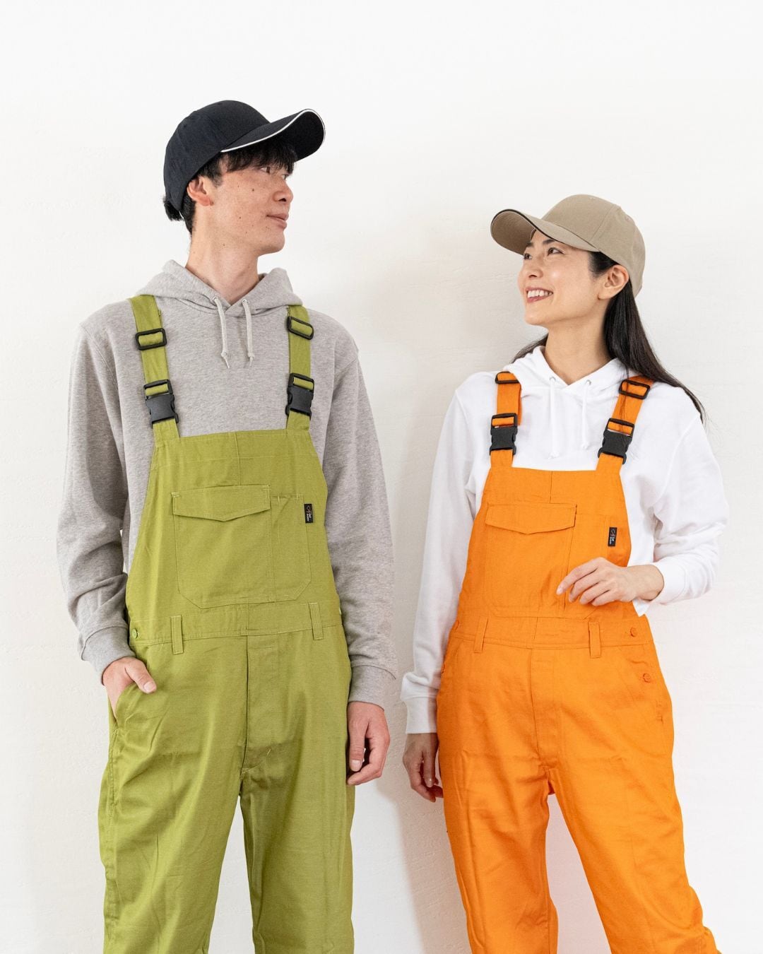白の緯糸とカラーの縦糸で織ったカラーデニムを使った多色展開で『あなたに合う色がある!』がコンセプトのサロペットです。
